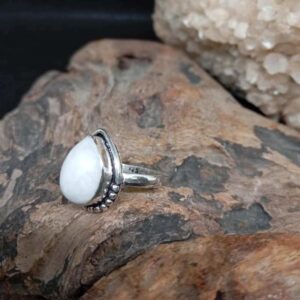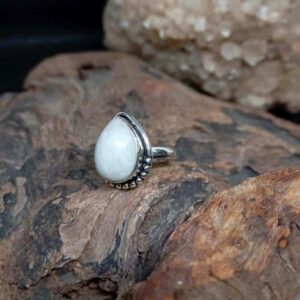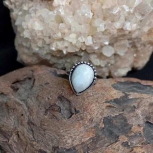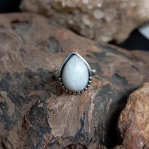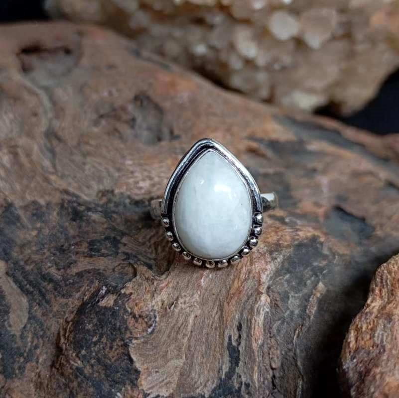 Ασημί δαχτυλίδι από καθαρό ασήμι 925, με σεληνόλιθο rainbow σε σχήμα σταγόνας.