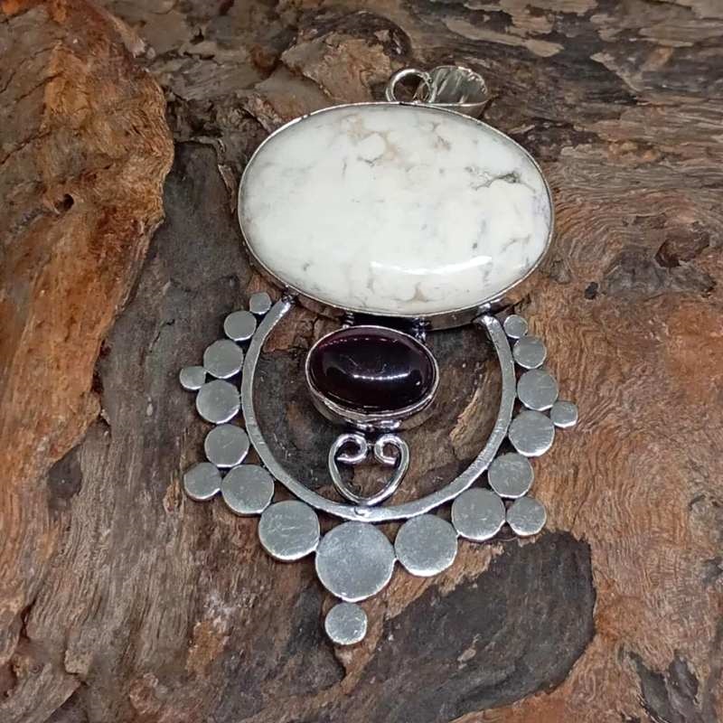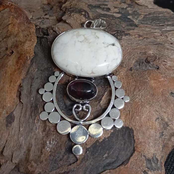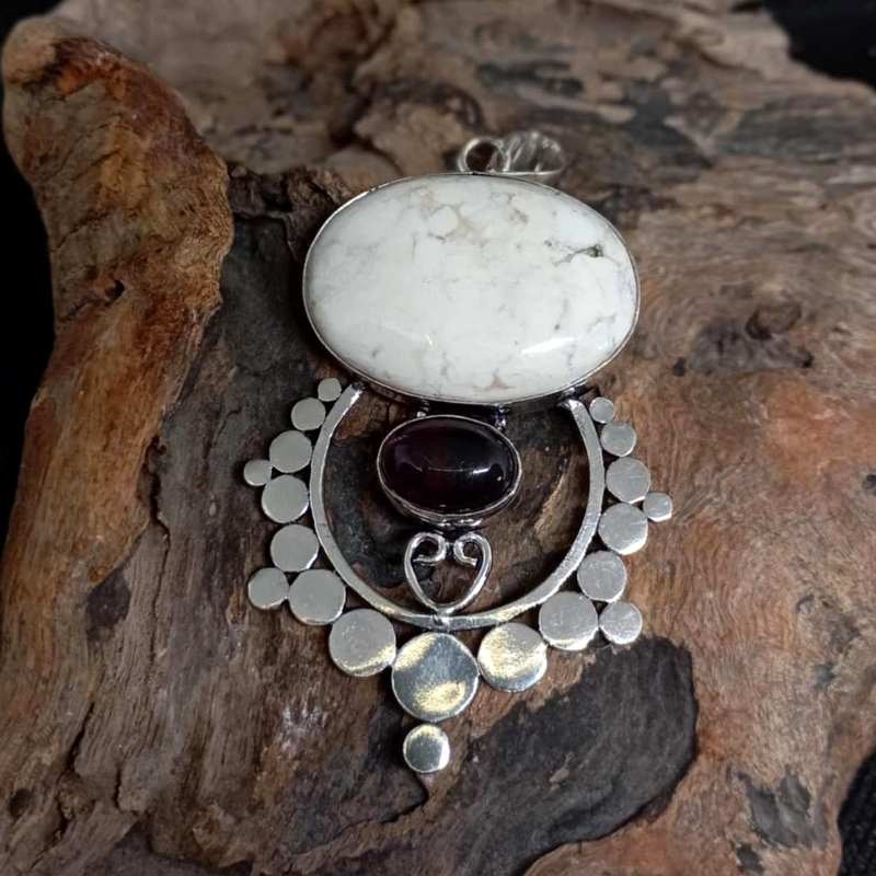 Επάργυρο Μενταγιόν με Λευκό Χαολίτη & Αμέθυστο