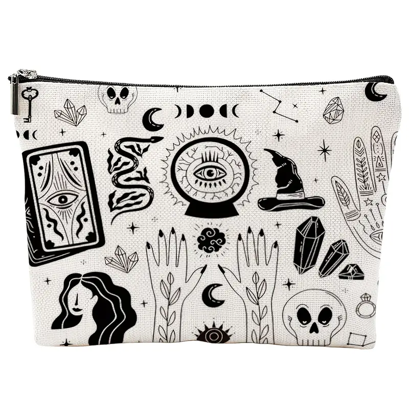 Σε λευκό χρώμα με witchy print και άλλα μαγικά σύμβολα.