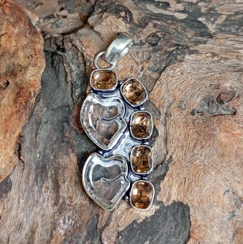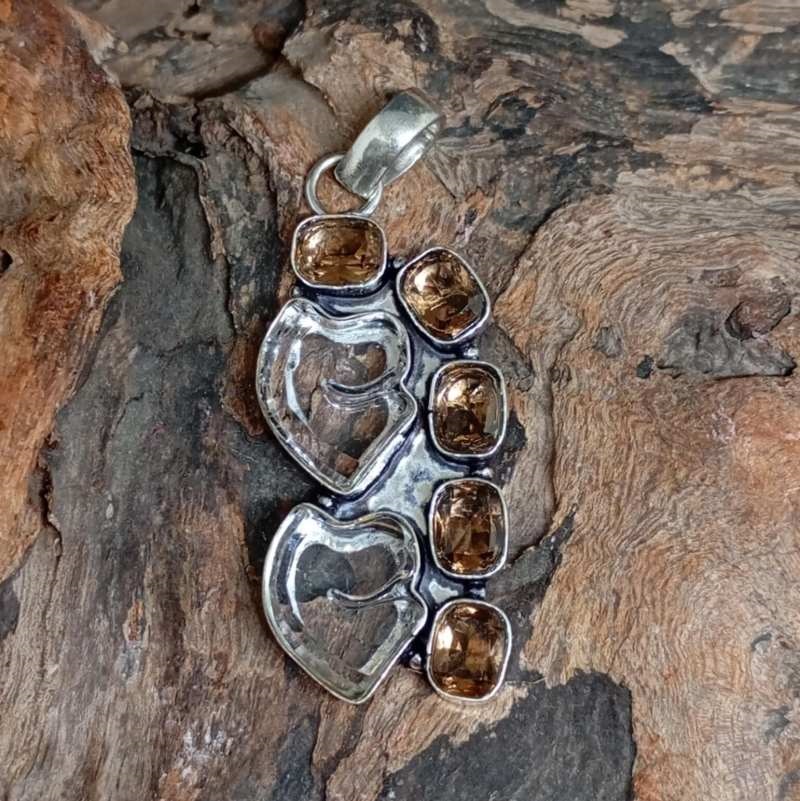 Μενταγιόν Ασήμι 925 με Διάφανο Τοπάζ και Μοργκανίτη