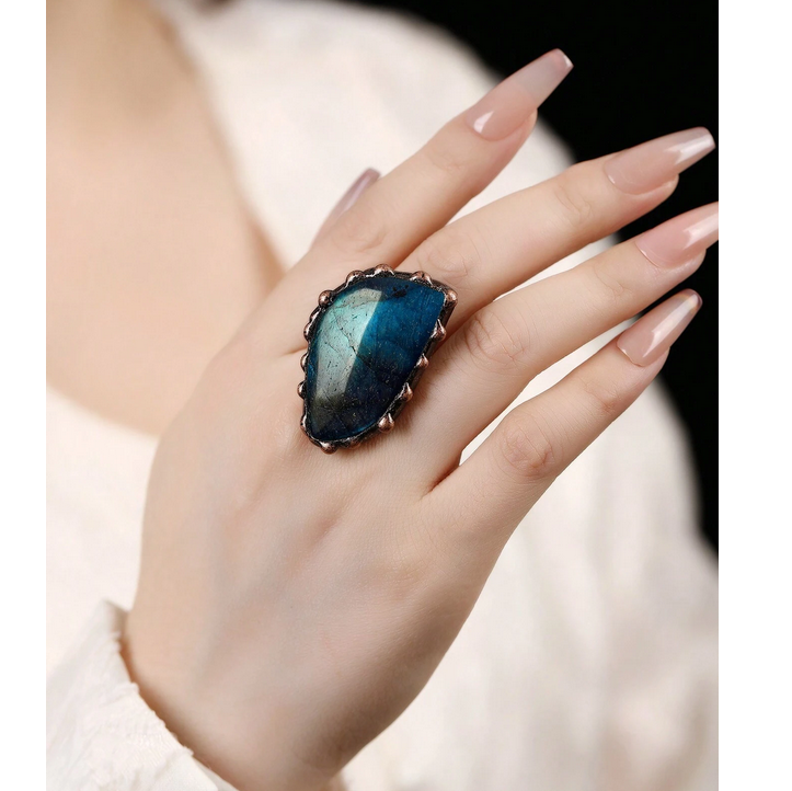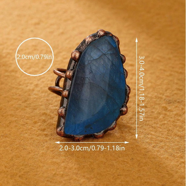 Χάλκινο Δαχτυλίδι με Μεγάλο Κομμάτι Λαβραδορίτη