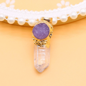 Χρυσό Μενταγιόν Με Αιχμή Χαλαζία και Druzy Αμέθυστου